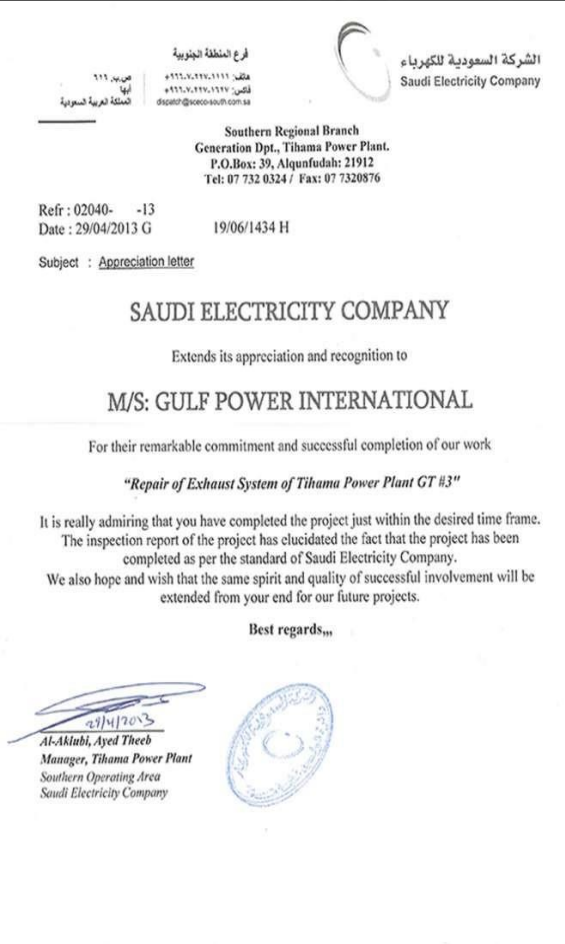 In the midst of the challenges facing companies such as employment and financial commitments, the Gulf Power International has maintained its leadership position in the market. The company is committed to strict performance standards, which obligate us to execute our business with the utmost precision to satisfy our client’s expectations and comply with quality standards. We are also committed to employing national and foreign talent through which the company’s goals and global reach are achieved.